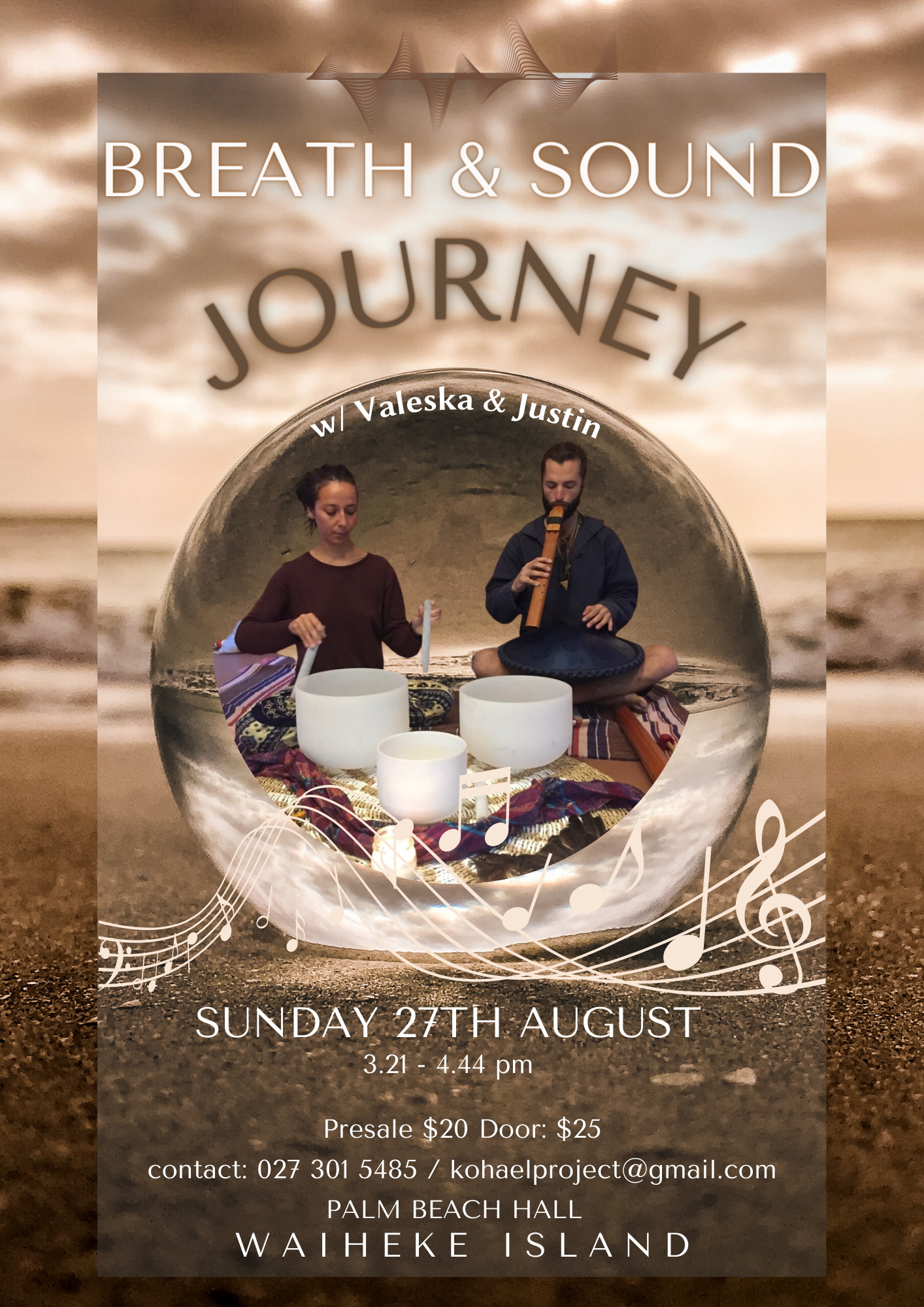 WEEKLY SOUND JOURNEY Sunday, 27 August 2023 3:15 pm 4:45 pm Palm Beach Hall 74 Palm Road Waiheke Island, Auckland, 1081 New Zealand (map) Google Calendar ICS